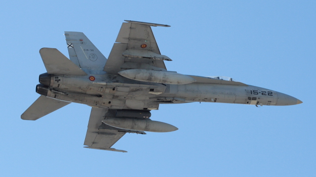 Entretanto otro EF-18M en configuración “limpia” (sin cargas ni