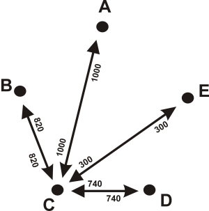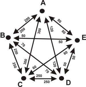a cinco localidades (A, B, C, D y E), y que cada una de ellas tiene la
