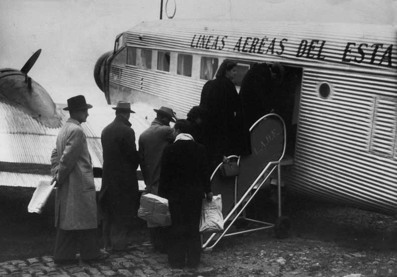 Pasajeros subiendo a un Junkers Ju52-3m de LADE.