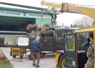 instalación de la turbina Honeywell T-53-L-703 abordo del renovado