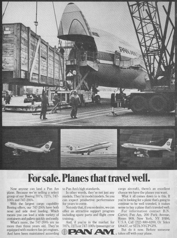 una publicidad de una empresa de primera línea, Pan American, en un